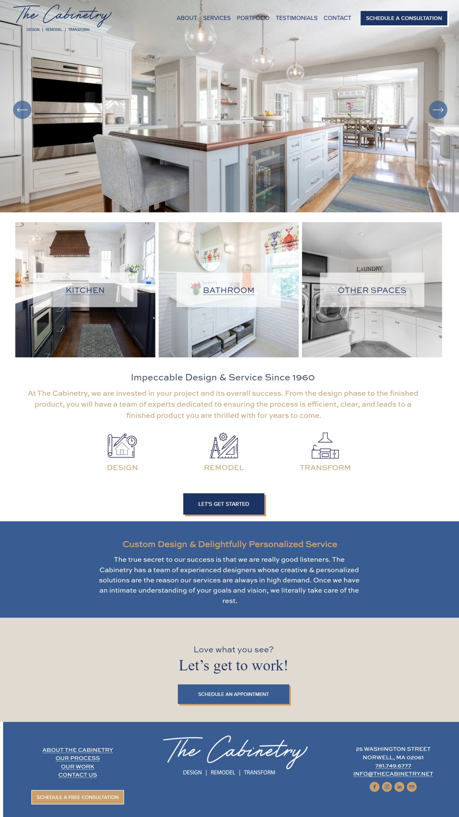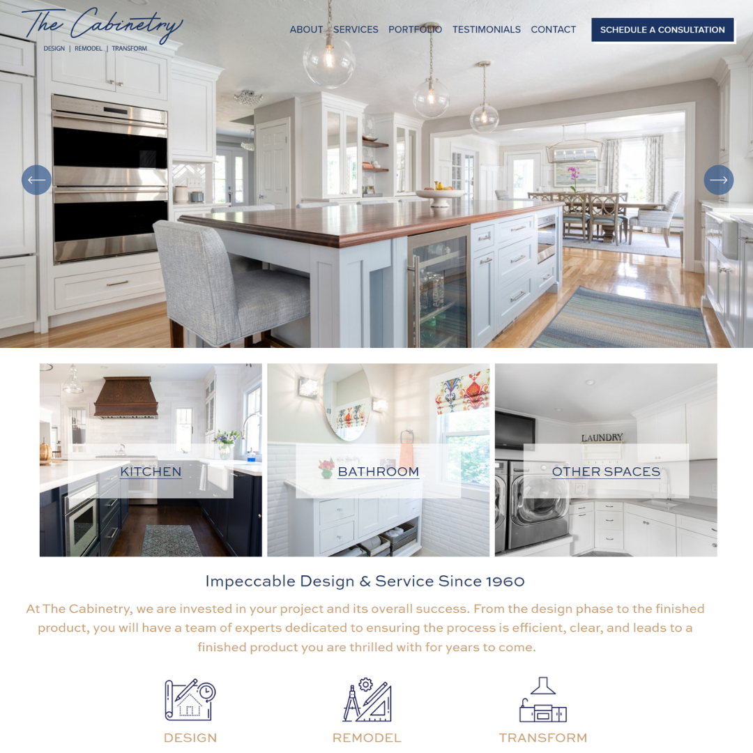 We started with market research to explore the most effective way to retain The Cabinetry’s existing logo and style but update it with a tagline that compliments it and helps to articulate the comprehensive services they provide. Hint: It’s not just cabinets!